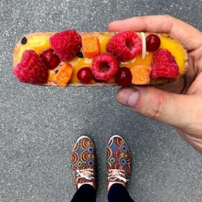 Très présent sur les réseaux sociaux, Tal Spiegel utilise l’image comme un prolongement naturel de son travail. La mise en scène de ses desserts, soignée et cohérente, participe à la construction de son univers. Loin d’un simple effet esthétique, cette communication visuelle renforce son propos : la pâtisserie est aussi un médium artistique, capable de dialoguer avec les tendances graphiques et culturelles actuelles.